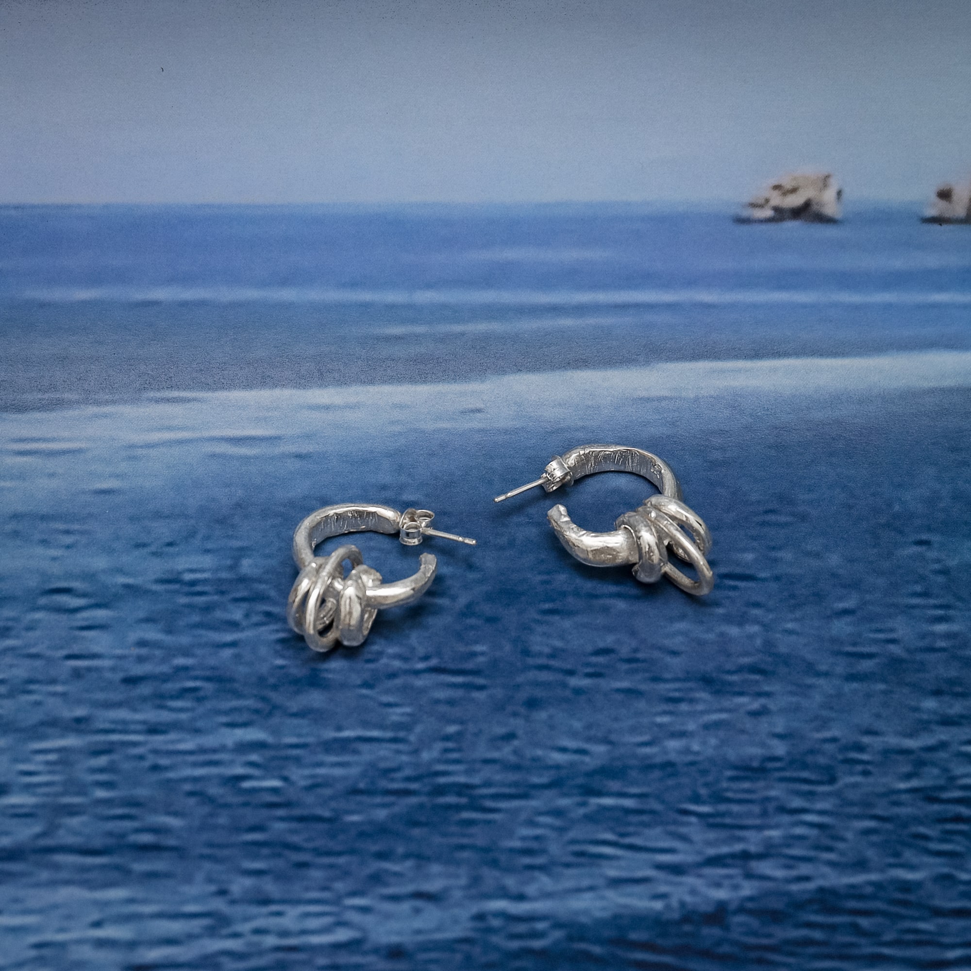 -Pair of earrings with a moving hanging hoop between two stable ones. The inner diameter 1.6cm